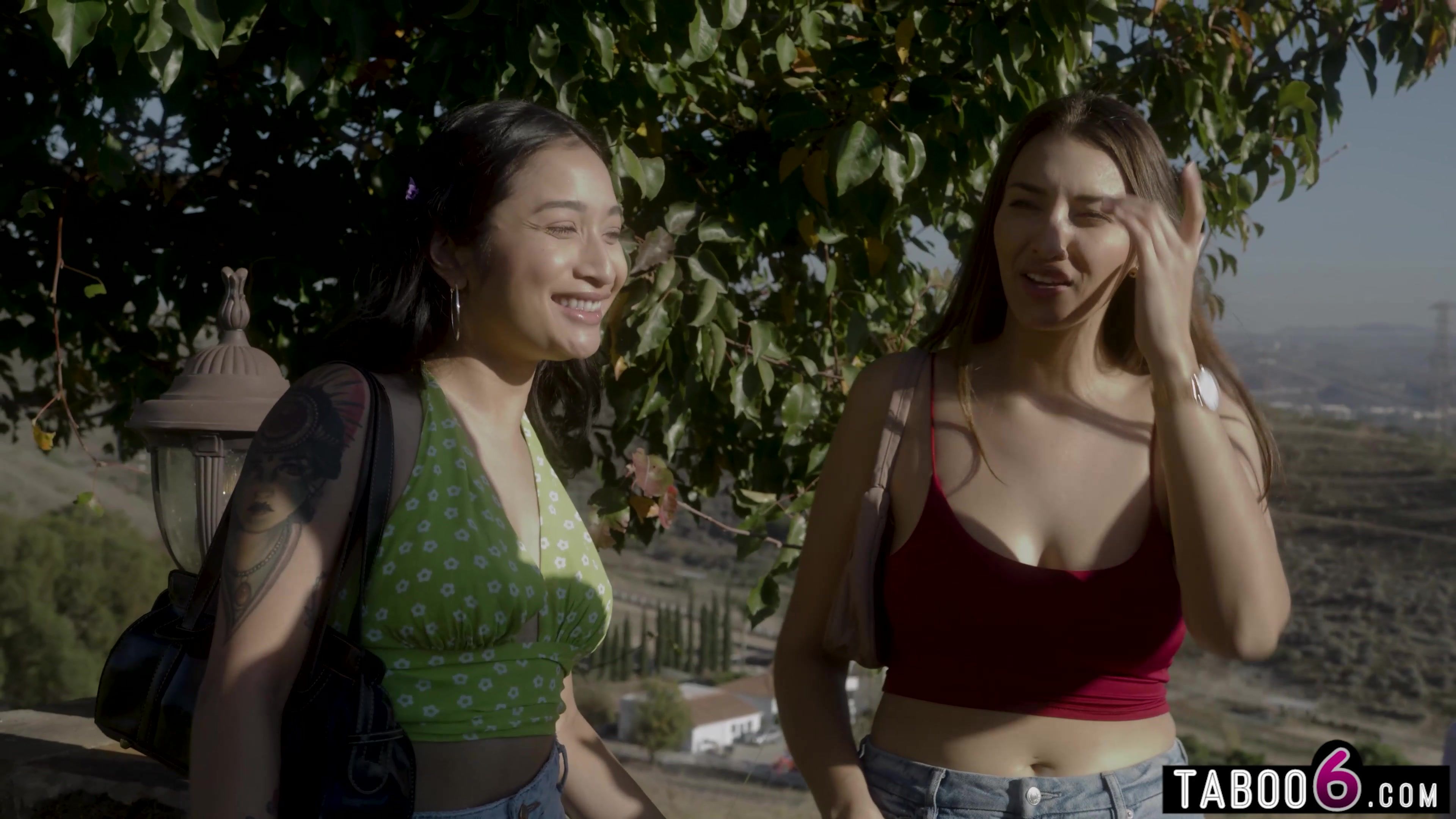 Stepsisters Bella Rolland and Avery Black take a private tour of a celebritys home with a sleazy tour guide who got them inside the house and showed them around before making his move on one of the cute stepsisters and later had the other join in!
