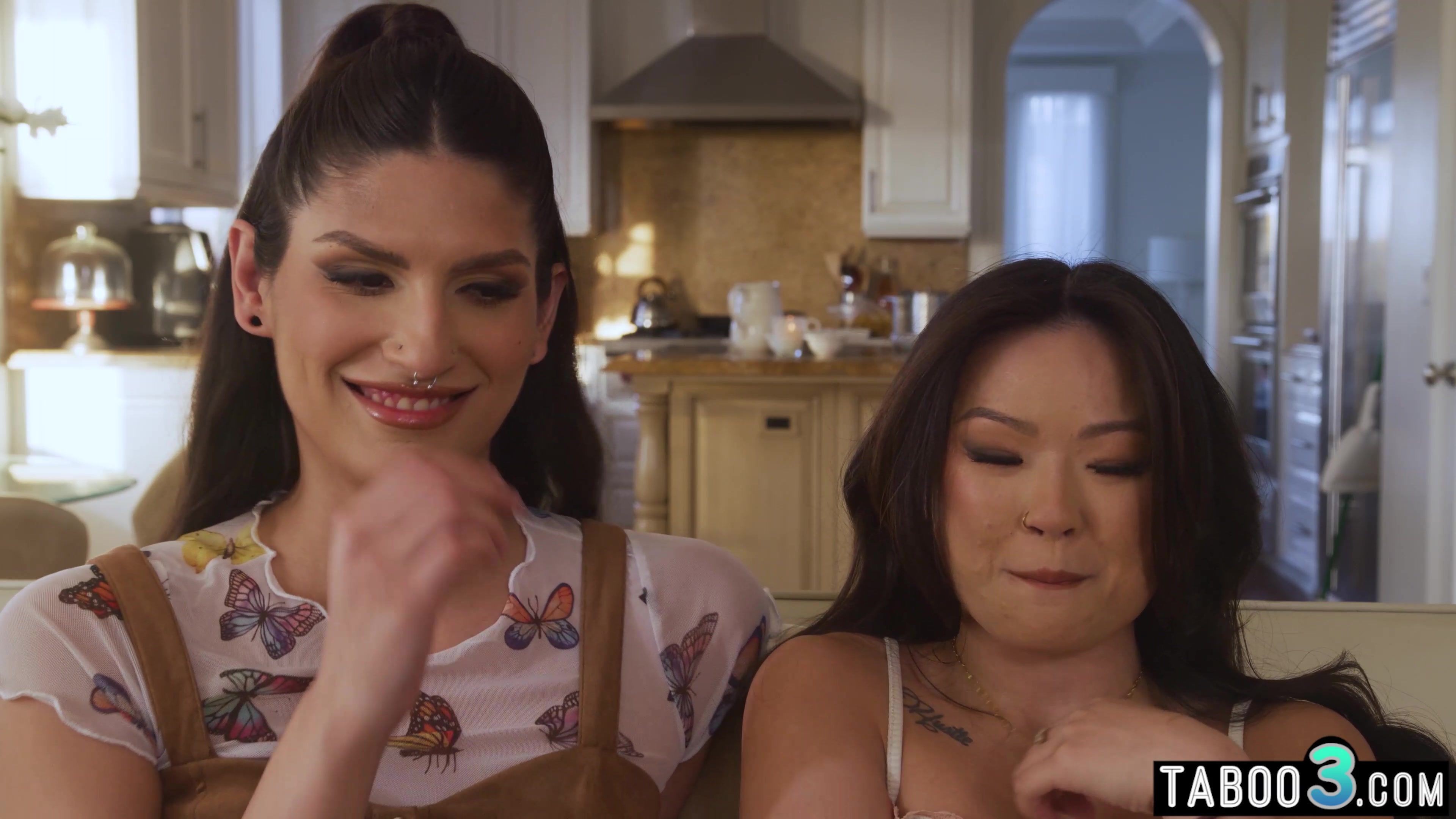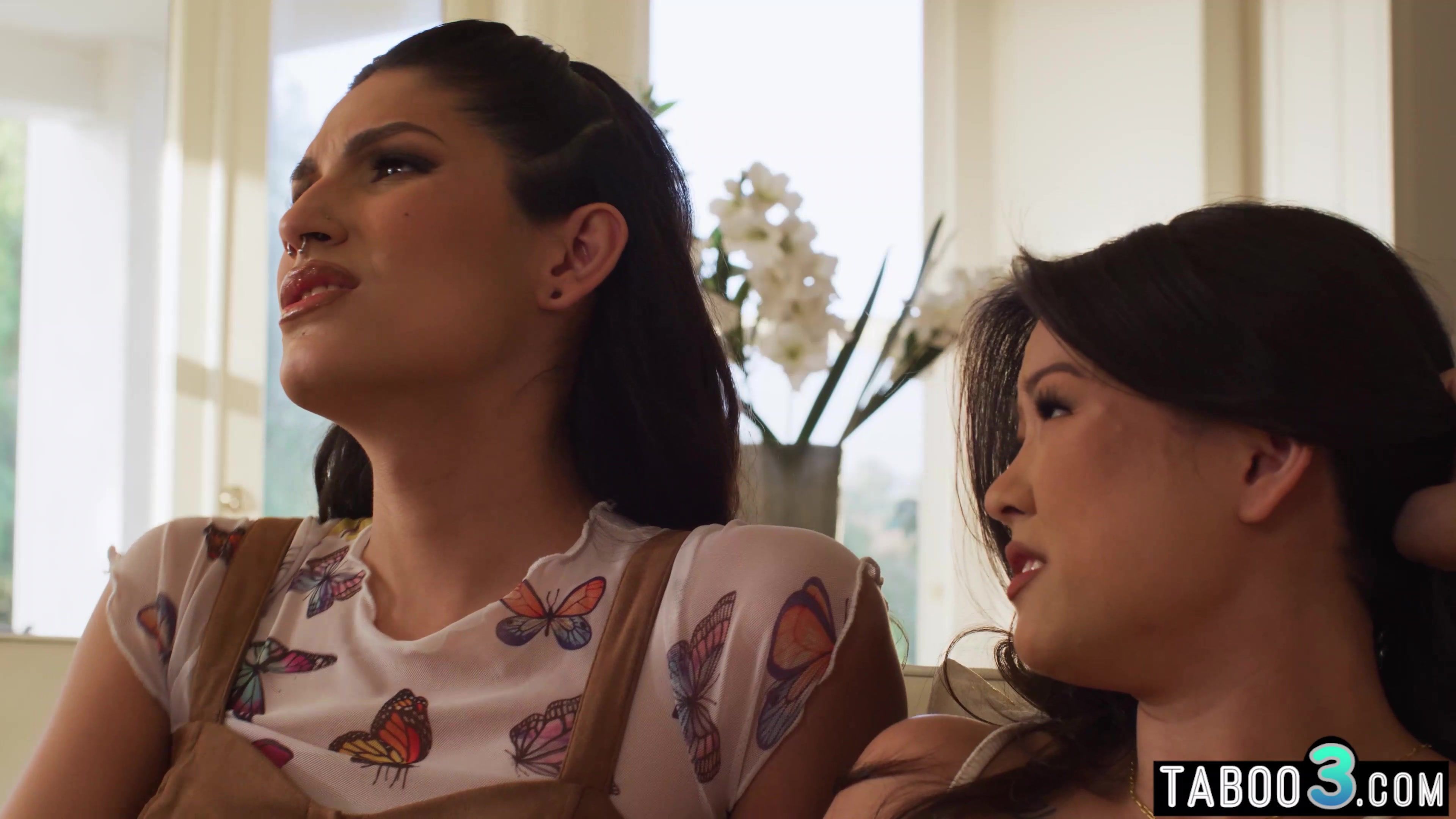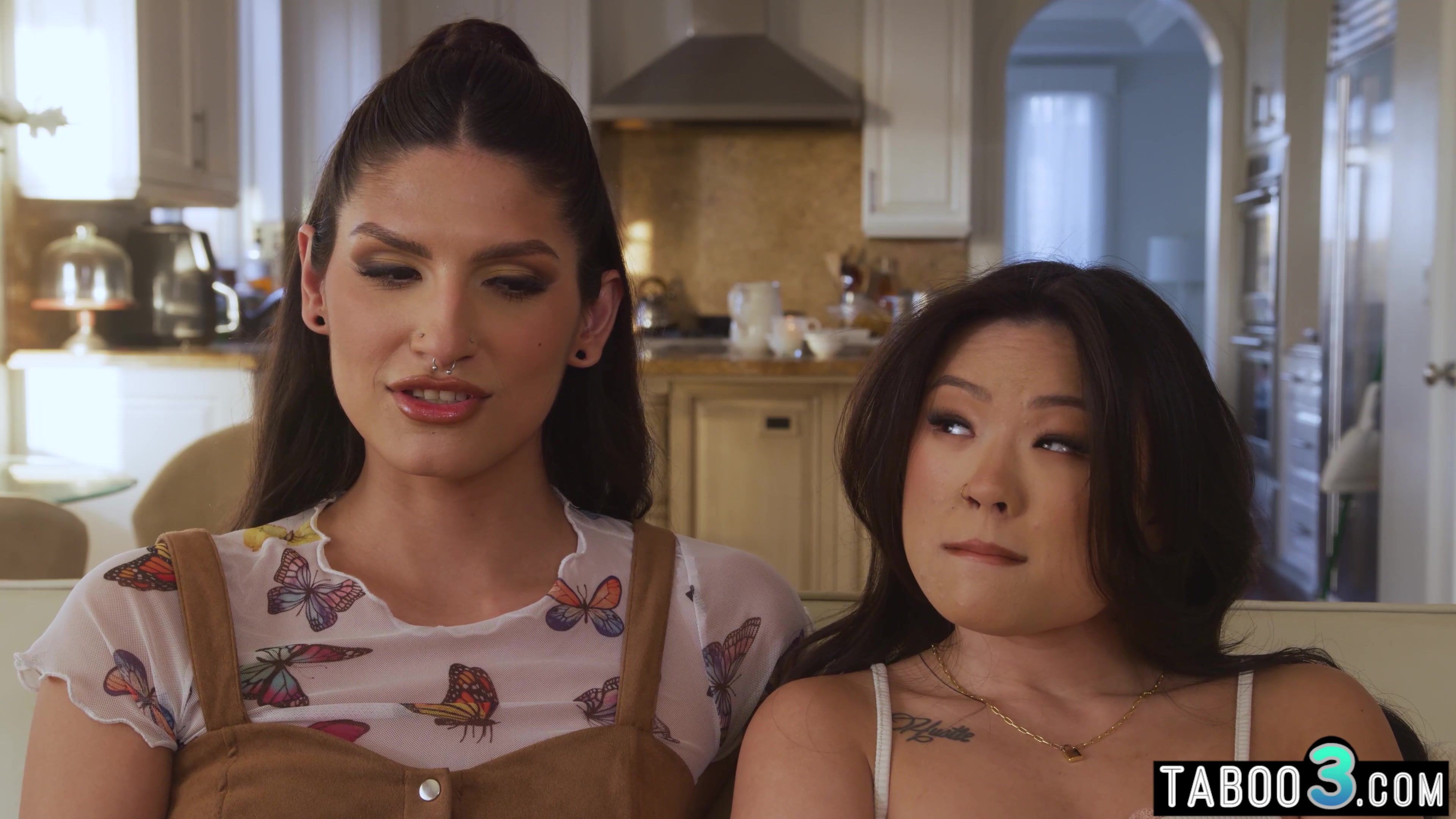 Petite asian teen Lulu Chu with small tits is playing truth or dare what ends on her latina transsexual GFs Zariah Aura hard cock She is sucking the TS dick then she lets her to fuck and creampie her exotic pussy