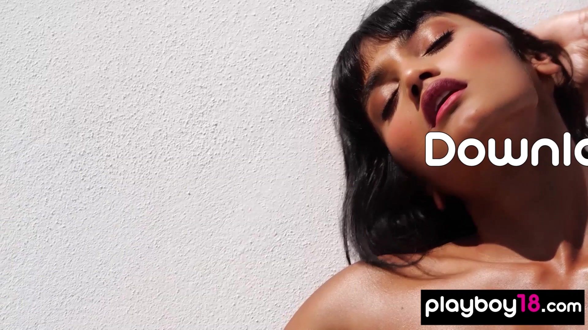 Petite brunette asian babe Angel Constance flashes her perfect natural tits for Playboy and drops off all her clothes she is posing naked outdoor then she is squeezing oranges on her boobs and her exotic pussy