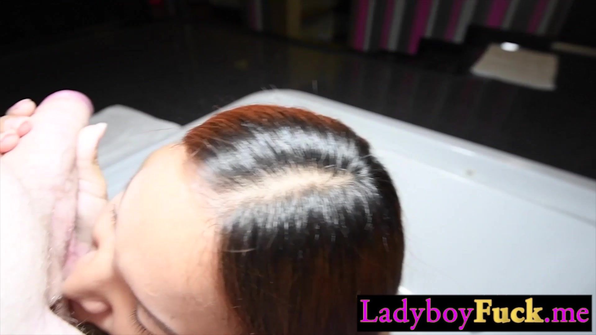 Handcuffed Asian femboy Nannie sucking white dick and European client enjoyed it and got satisfied by shemale Sexy Asian ladyboy knelt and started sucking dick Hot tranny swallowed whole white dick during amateur blowjob