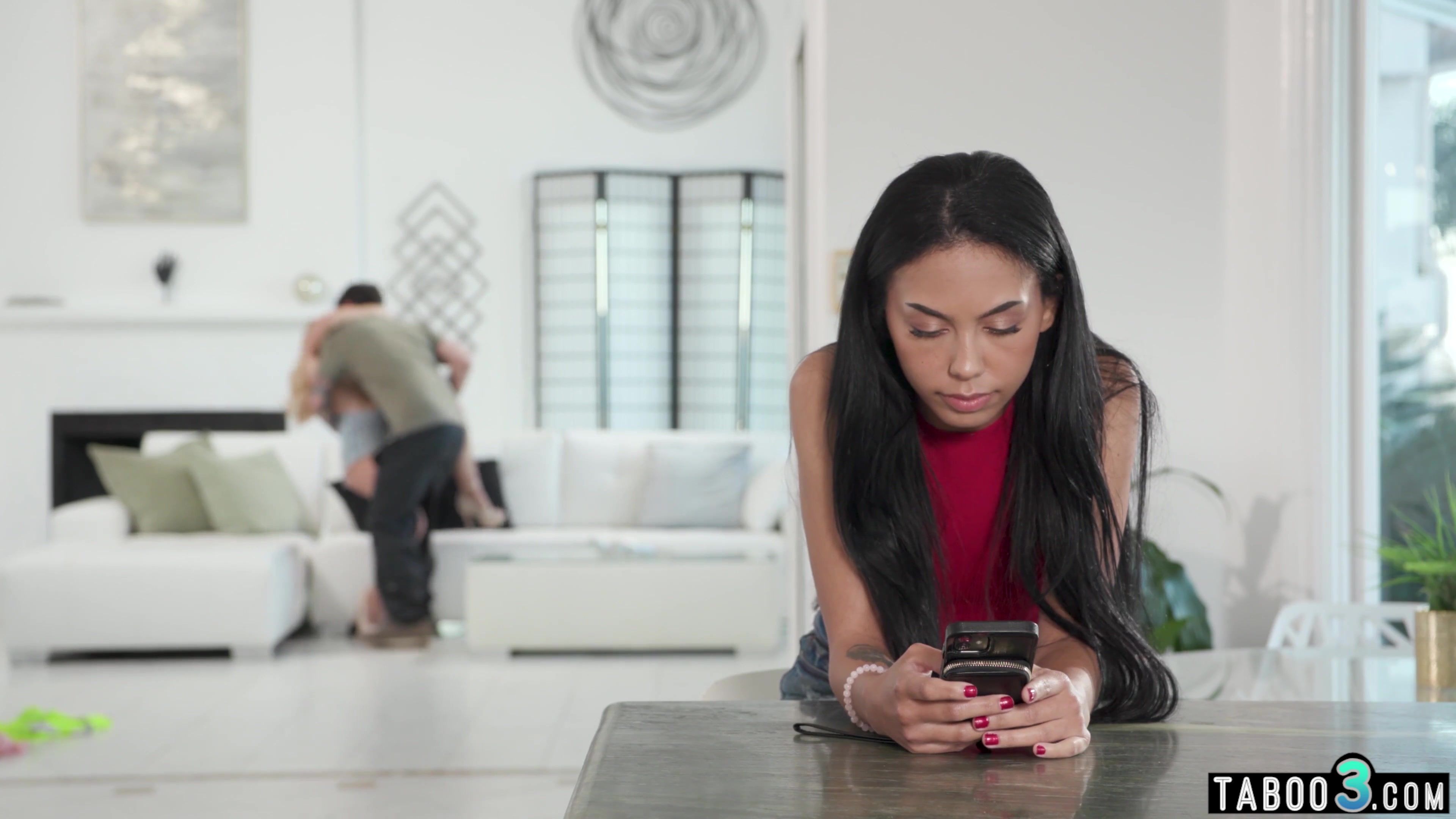 Asan teen stepdaughter Bianca Bangs likes to watch her blonde MILF stepmother Danielle Renae with big boobs fucking a big dick So when the delivery man comes and her cheater stepmom starts sucking his cock she sits next to her and starts masturbating
